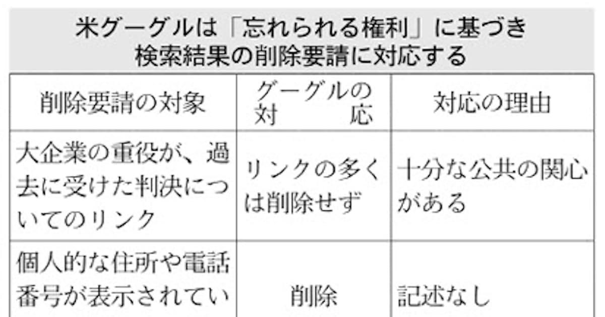 忘れられる権利 グーグル100万件削除 日本経済新聞