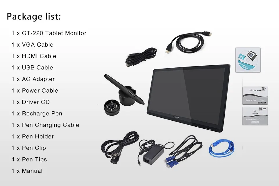 Amazon Com Huion Gt 2 V2 Ips Graphics Drawing Monitor 21 5 Inch Pen Display Hd Screen For Mac And Pc Black Computers Accessories