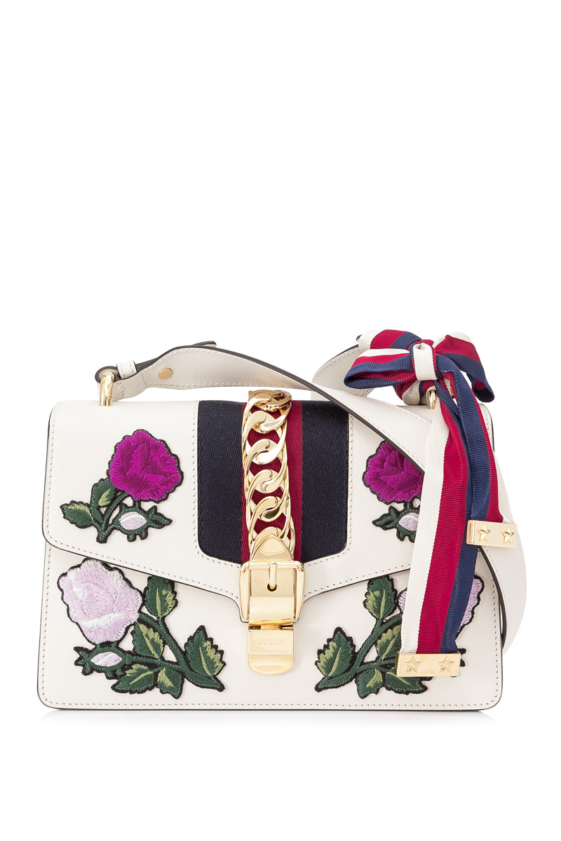 Gucci White Embroidered Sylvie Small Shoulder Bag Aw Farfetch Com