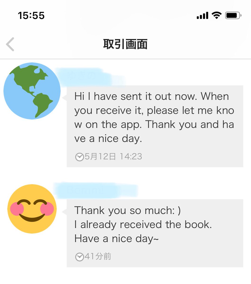 ゆきの 深セン帰れない68日目 メルカリにて なんか連絡こないなーというのが2件立て続けに どうやら日本語いまいちらしい 取引連絡とか受け取り通知とか やりとり多くてめんどいよねわかる 海外いかなくても 日本でフツーに生活してフツーに メルカリ