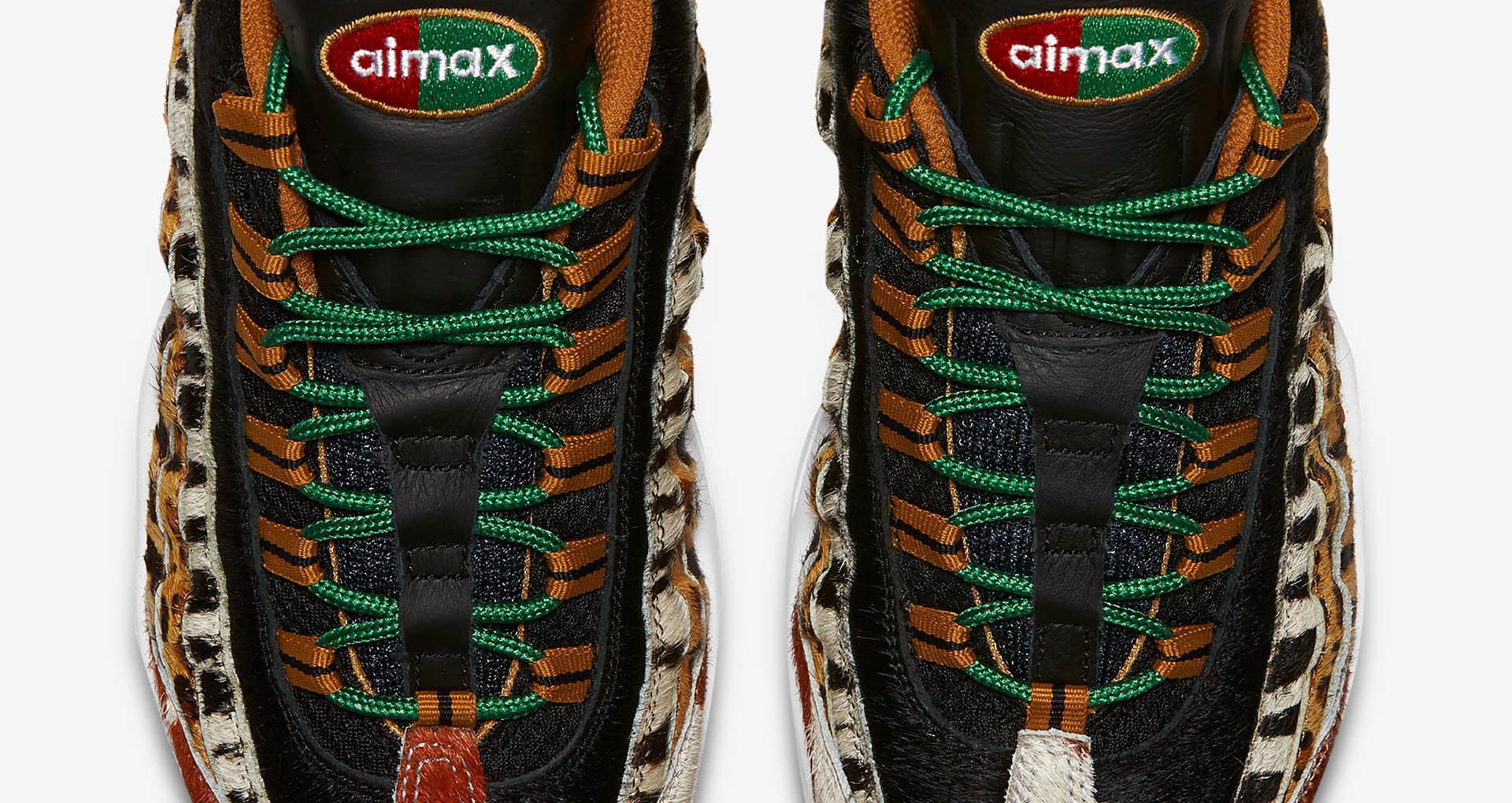 Bit.ly/2piaTRp 4AM EST NikeEU:. Wear a piece of sneaker history with a pair of Nike Air Max 95 shoes. This Atmos x Nike Air Max 95 revisits the zebra, cheetah, tiger, and giraffe prints used on the original "Animal" release in 06 but swaps the white pony hair panels on the upper for black ones.
