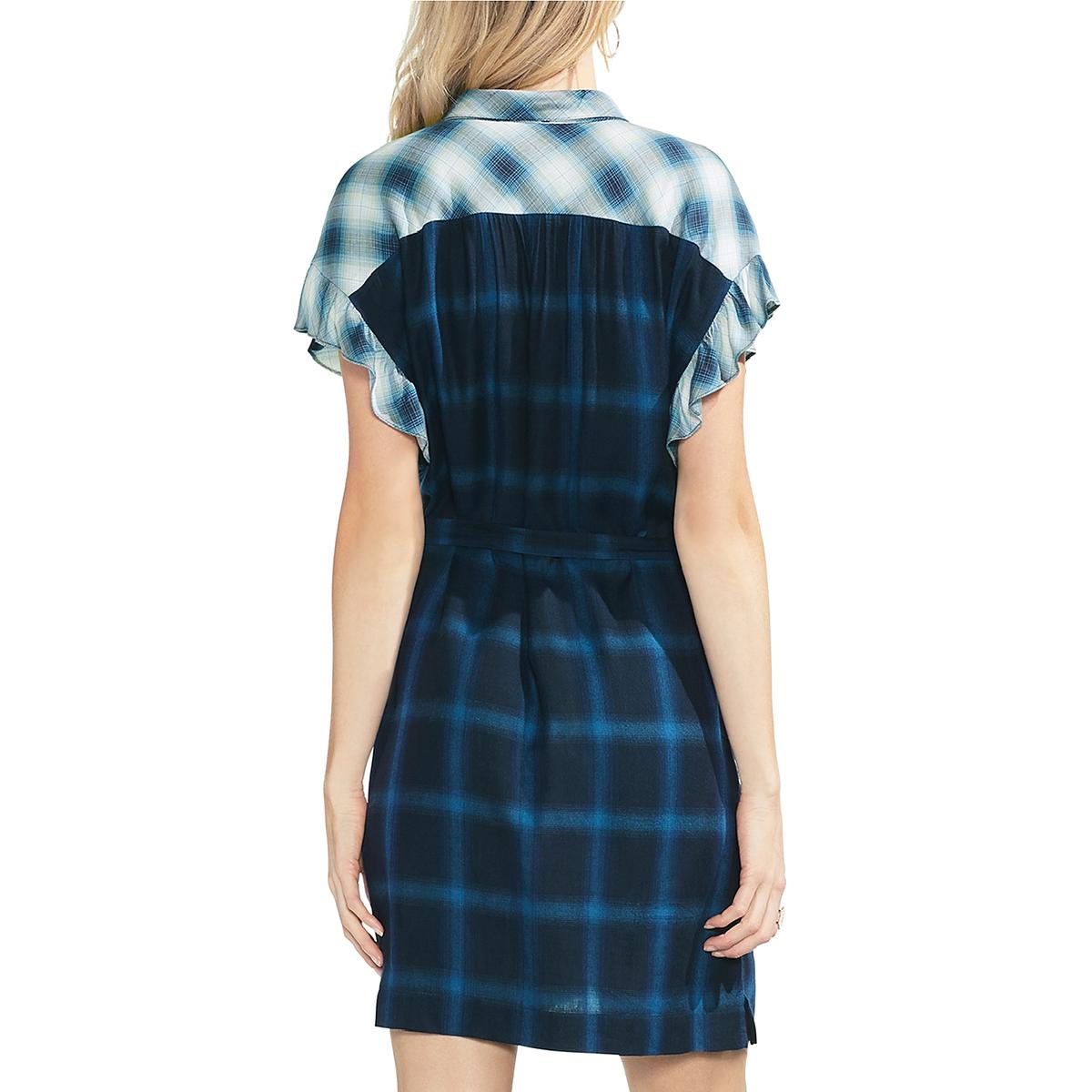 Vince Camuto Womens Glen Plaid Flutter Sleeves T Shirt Dress