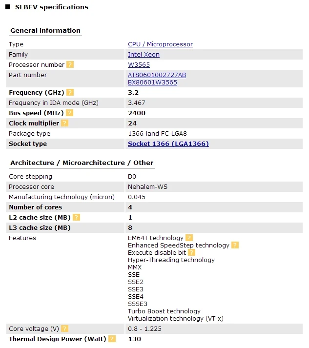 Amazon Com Intel Xeon W3565 3 ghz Quad Core Slbev Socket Lga 1366 Server Cpu Processor Computers Accessories
