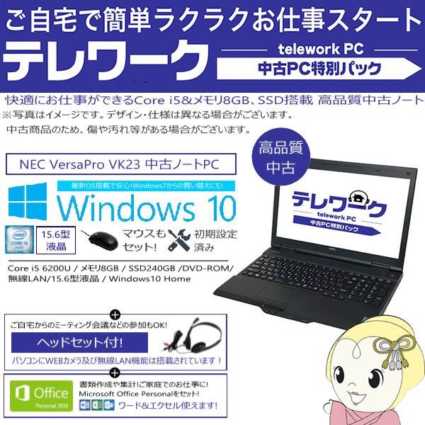 あすつく 在庫あり 中古品 メーカー保証3か月 Nec Versapro Vk23 15 6型 リユースパソコン Pcvk23tx T 在宅テレワークに最適 ぎおん 通販 Paypayモール